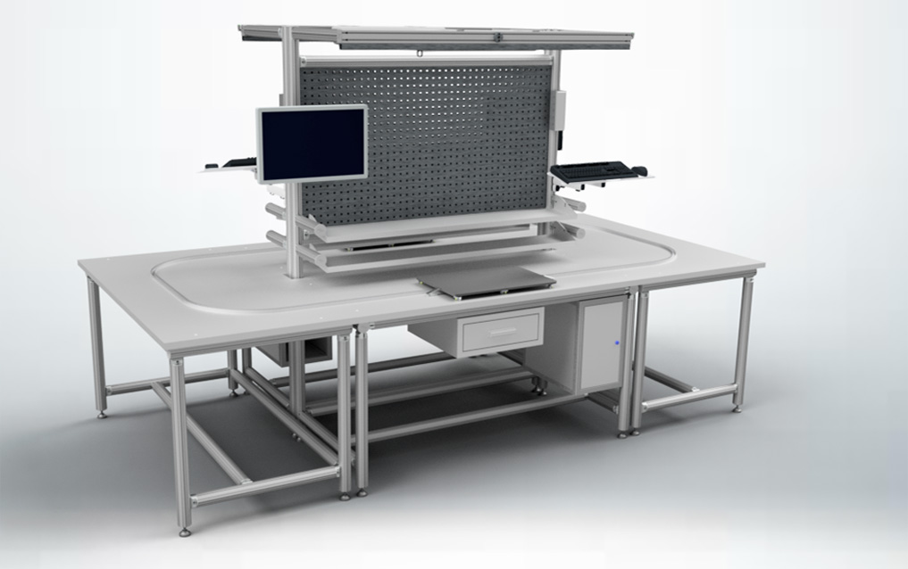 Toujours à base d’un nombre réduit de profilés aluminium, connecteurs et accessoires, notre gamme LeanConcept® Easysae vous permet de réaliser toute sorte de meuble industriel : poste de travail, desserte, ligne de production ou encore présentoir pour citer quelques exemples.