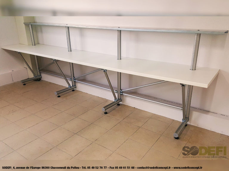 SODEFI propose désormais une gamme de produits standards à partir de ses profilés aluminium et connecteurs LeanConcept® Easysae pour répondre à tous vos besoins de meuble industriel :