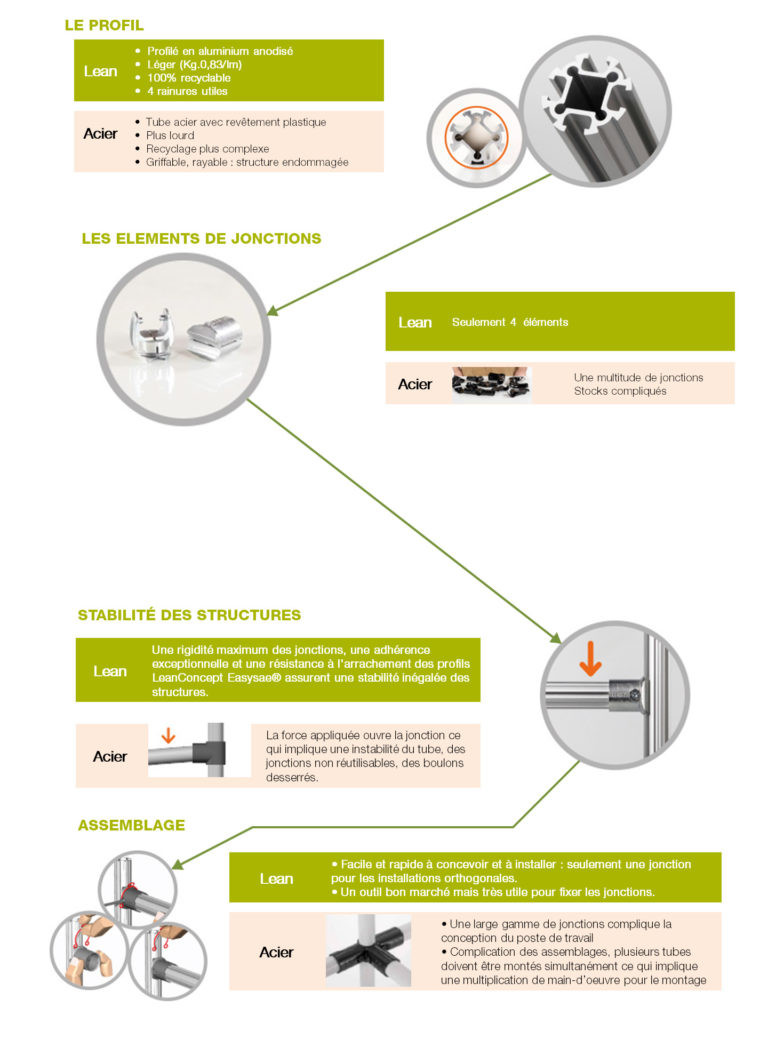 Les rails à galets LeanConcept® Easysae offrent l’avantage d’une grande modularité et d’une facilité d’installation.